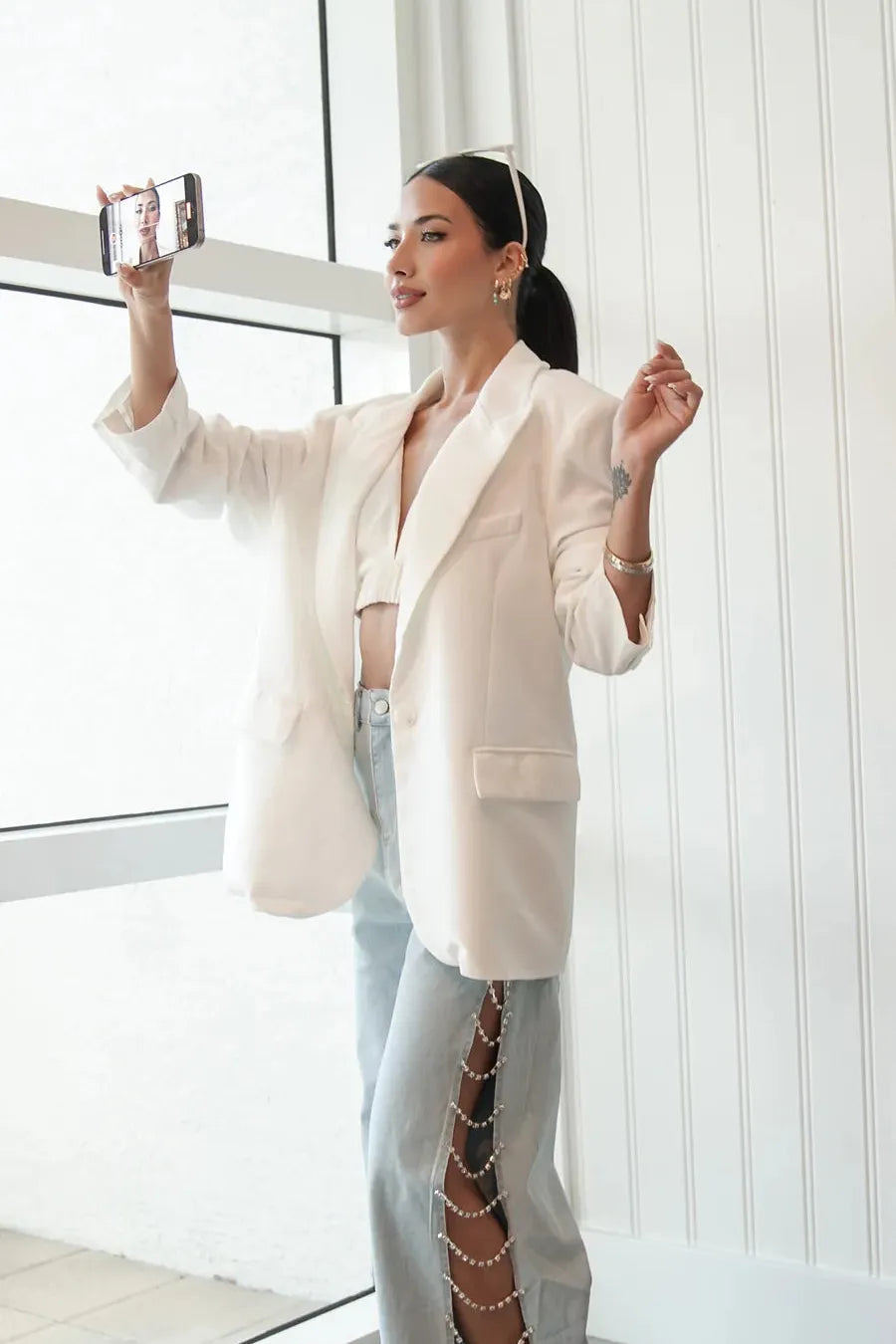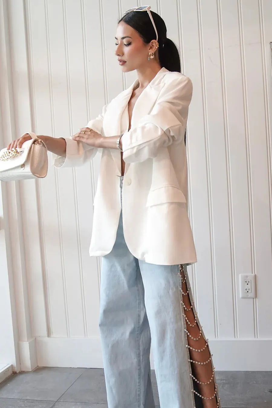 Style Them: To capture the night, wear with a glittering top, bold heels, and a classic leather jacket. For daytime chic, mix with a graphic tee, comfy flats, and a tailored blazer. These styling tips ensure your embellished jeans are always the focal point, blending opulence with casual charm.