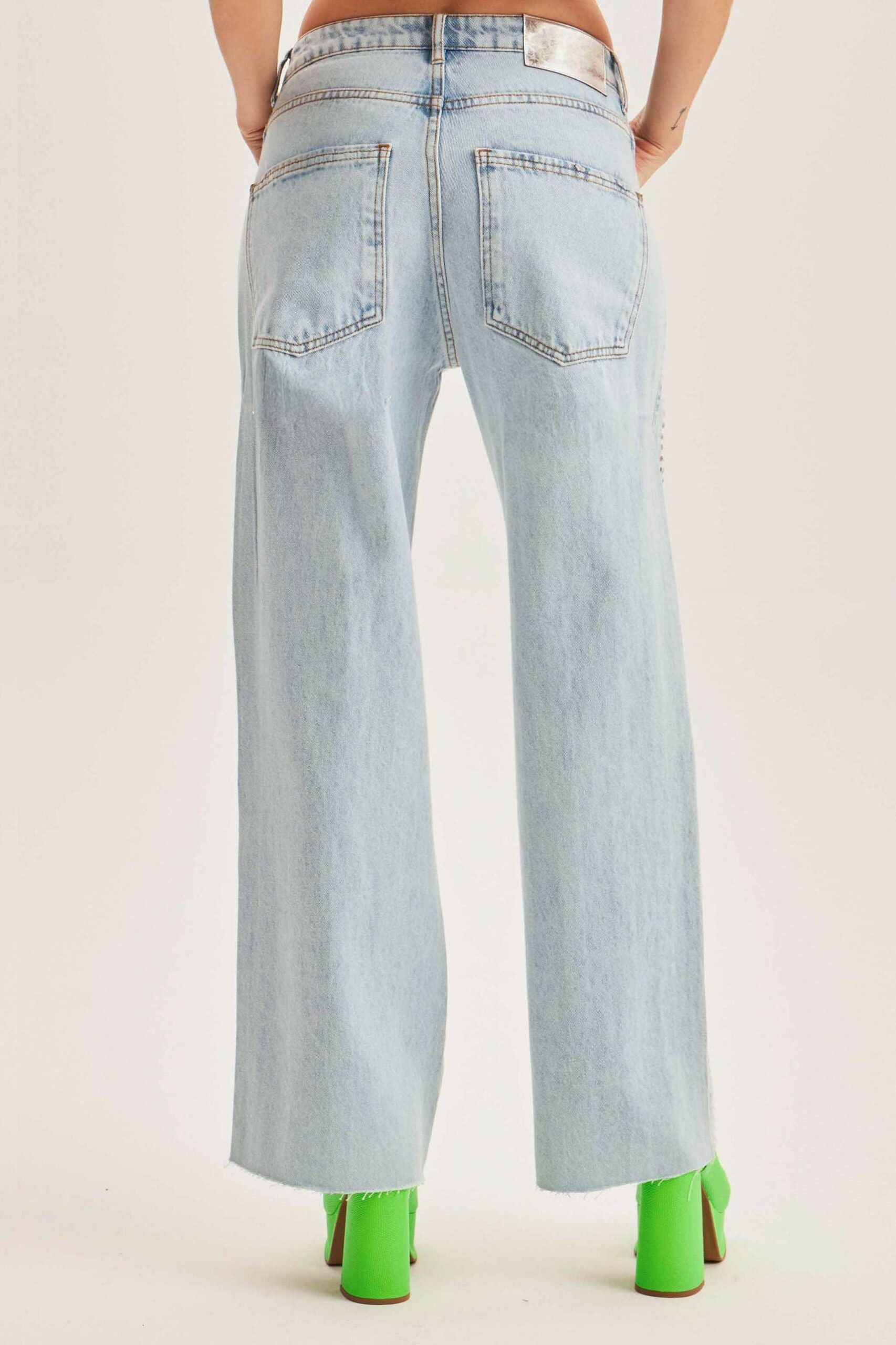 Pearl Eden – Rhinestone Embellished Wide Leg Jeans – Ice Blue