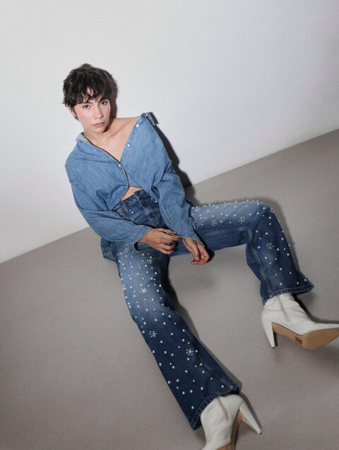 Myra – High Rise Pearl Embellished Wide Leg Jeans