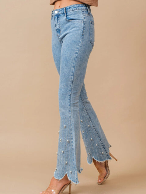 Sophia – High Rise Pearl Embellished Boot Cut Jeans